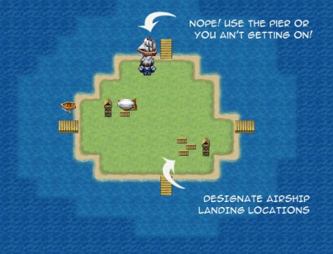 I used this to replicate Final Fantasy’s airship landing restrictions., where one could only land on grasslands. In OZMASAGA, you can also land on snow, but you can’t land on hills.