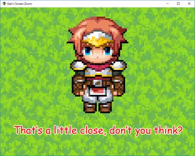 This plugin allows you to zoom the screen to a certain x,y pixel location, scale and taking a certain duration to do it. Only map and map sprites will be affected by the zoom – window message and other scenes will not. The zoomed screen can be moved around by calling the script again with different x,y position or scale.