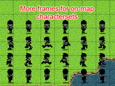 A separate plugin ‘CF Step SE’ enables you to set stepping sound effects that will play for specified frames on certain terrains. This plugin requires the Character Frames plugin.